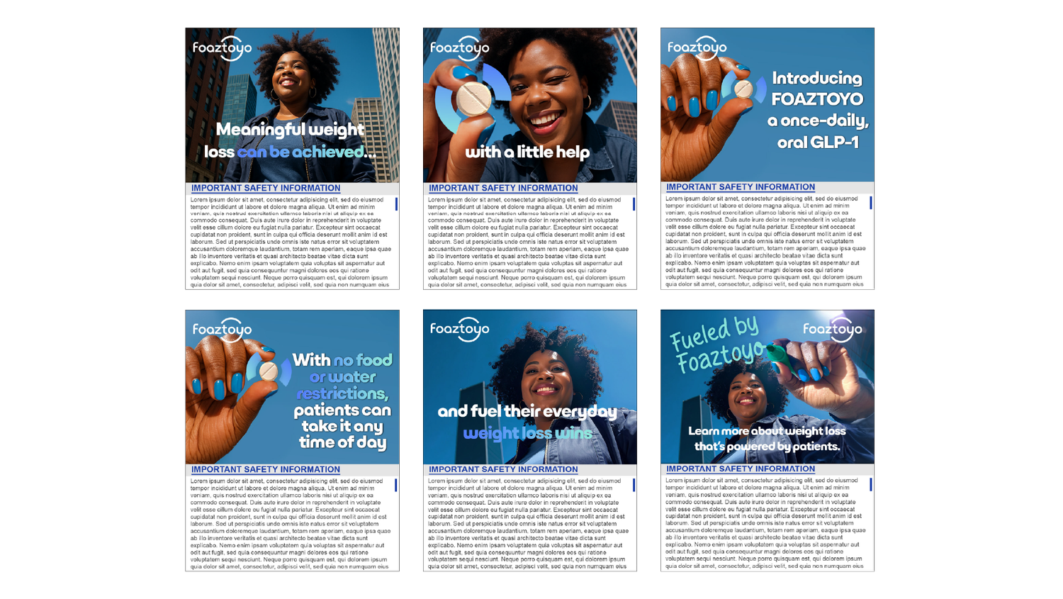 The Concept: FOAZTOYO is a helluva drug, but it provides the best results when partnered with a patient who works for their weight loss. It’s the extra boost they need to hit the goals they’ve been striving toward with diet and exercise.
